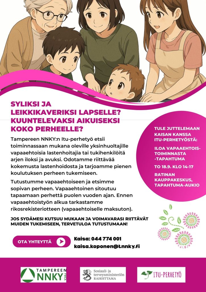 TERVETULOA TUTUSTUMAAN ITU-PERHETYÖN VAPAAEHTOISUUTEEN ILOA VAPAAEHTOISTOIMINNASTA -TAPAHTUMAAN ->