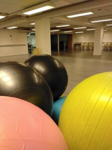 - Venyttelynyrkkaus, jossa jumppa-alustoja ja -palloja